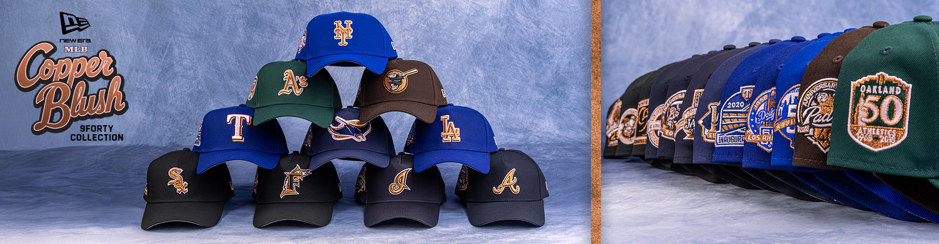 This drop flips familiar MLB® logos with a copper hit that catches light differently—quiet, polished, and made for everyday wear.
