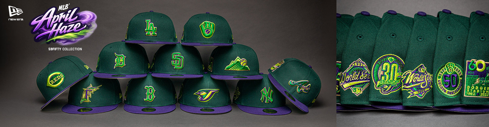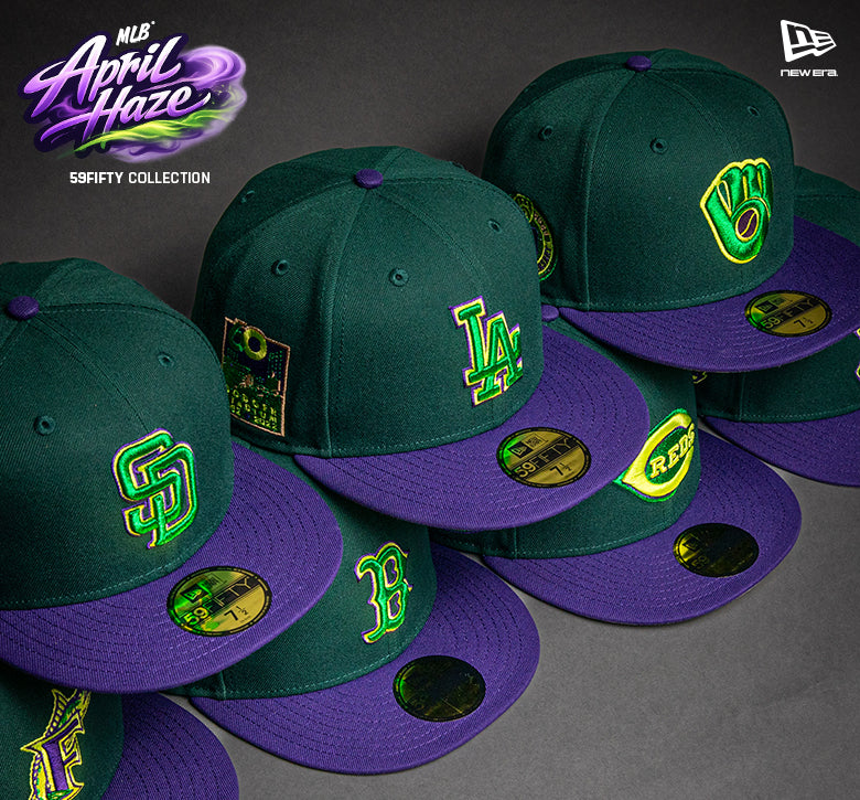 The MLB April Haze New Era 59FIFTY collection leans into that laid-back energy with rich greens, deep purples, and a slow-burn palette that sets the tone.