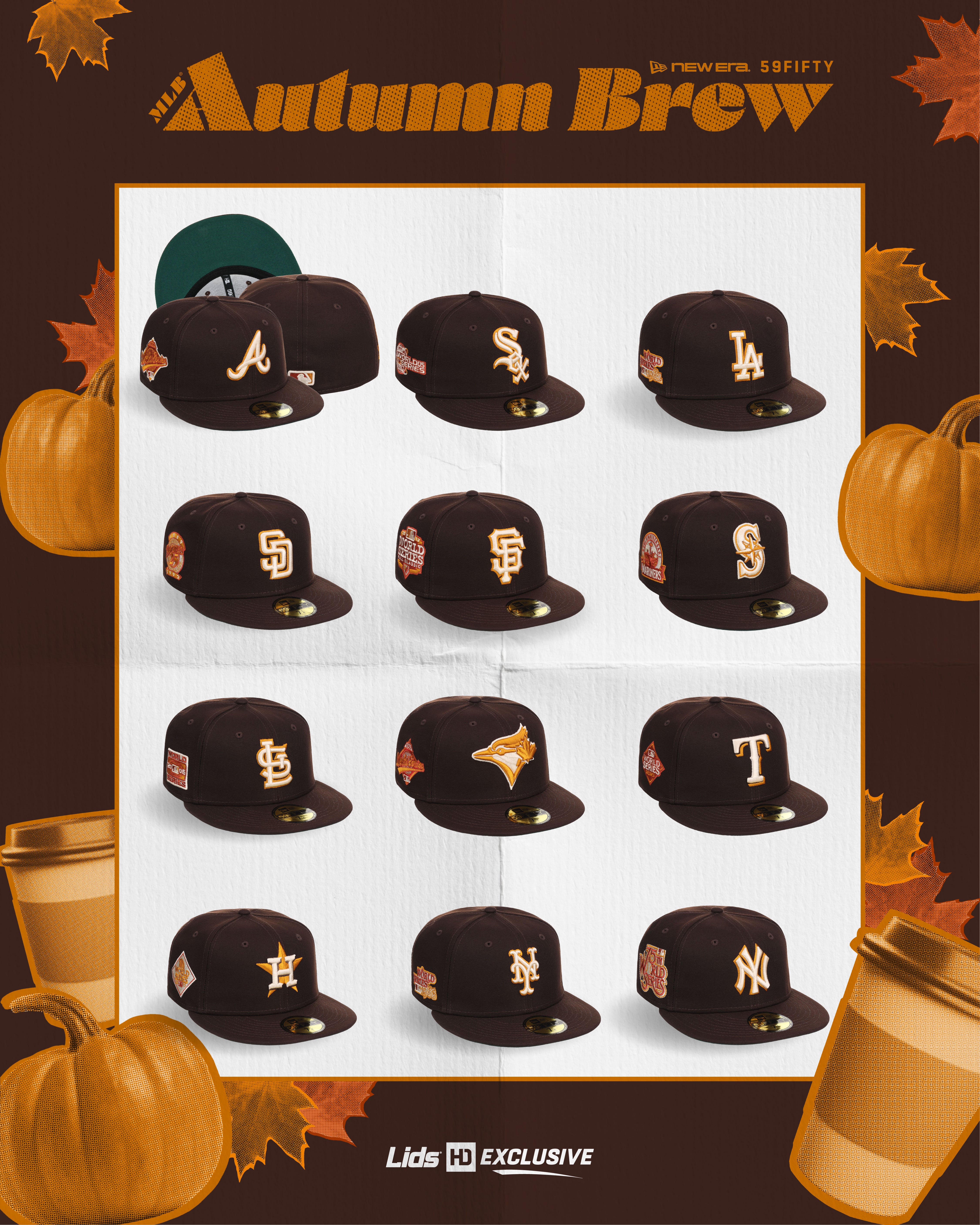 The MLB Autumn Brew Collection brings a fresh roast of fall favorites to Lids HD, with warm-weather colorways and details inspired by the comfort of your favorite fall beverage—without the long drive-thru line.